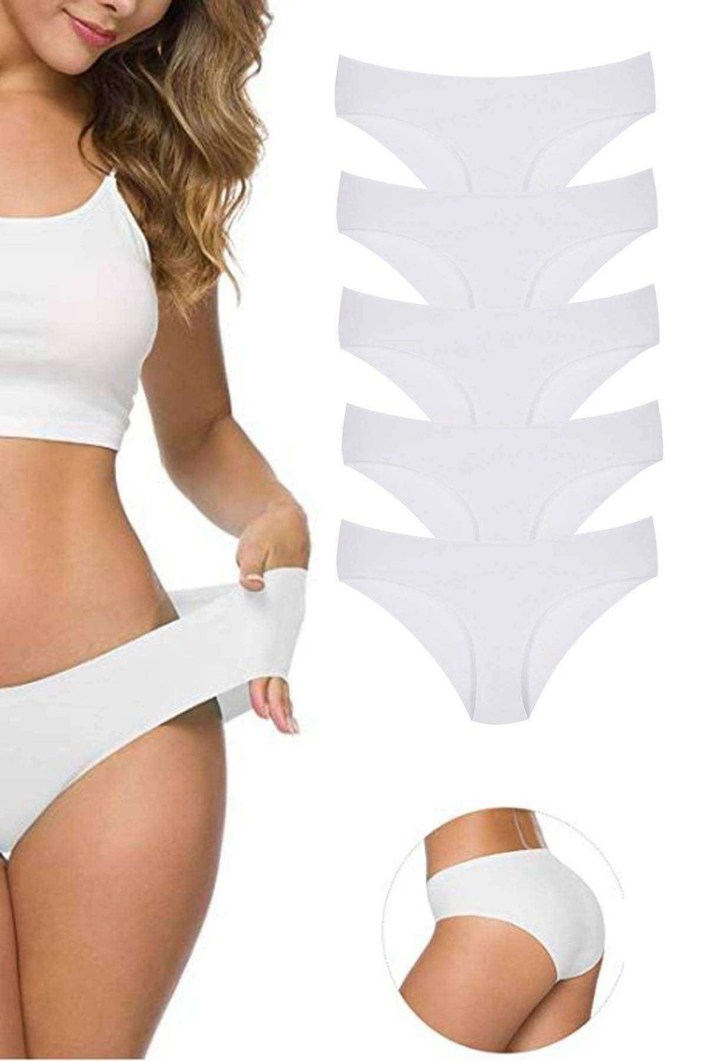 5 Adet Kadın Dikişsiz Lazer Kesim Esnek İz yapmayan Külot Beyaz