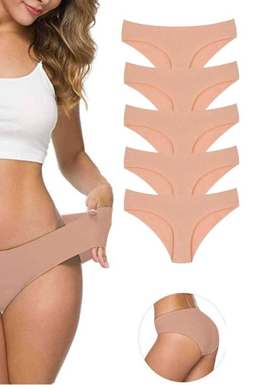 5 Adet Kadın Dikişsiz Lazer Kesim Esnek İz yapmayan Külot Ten