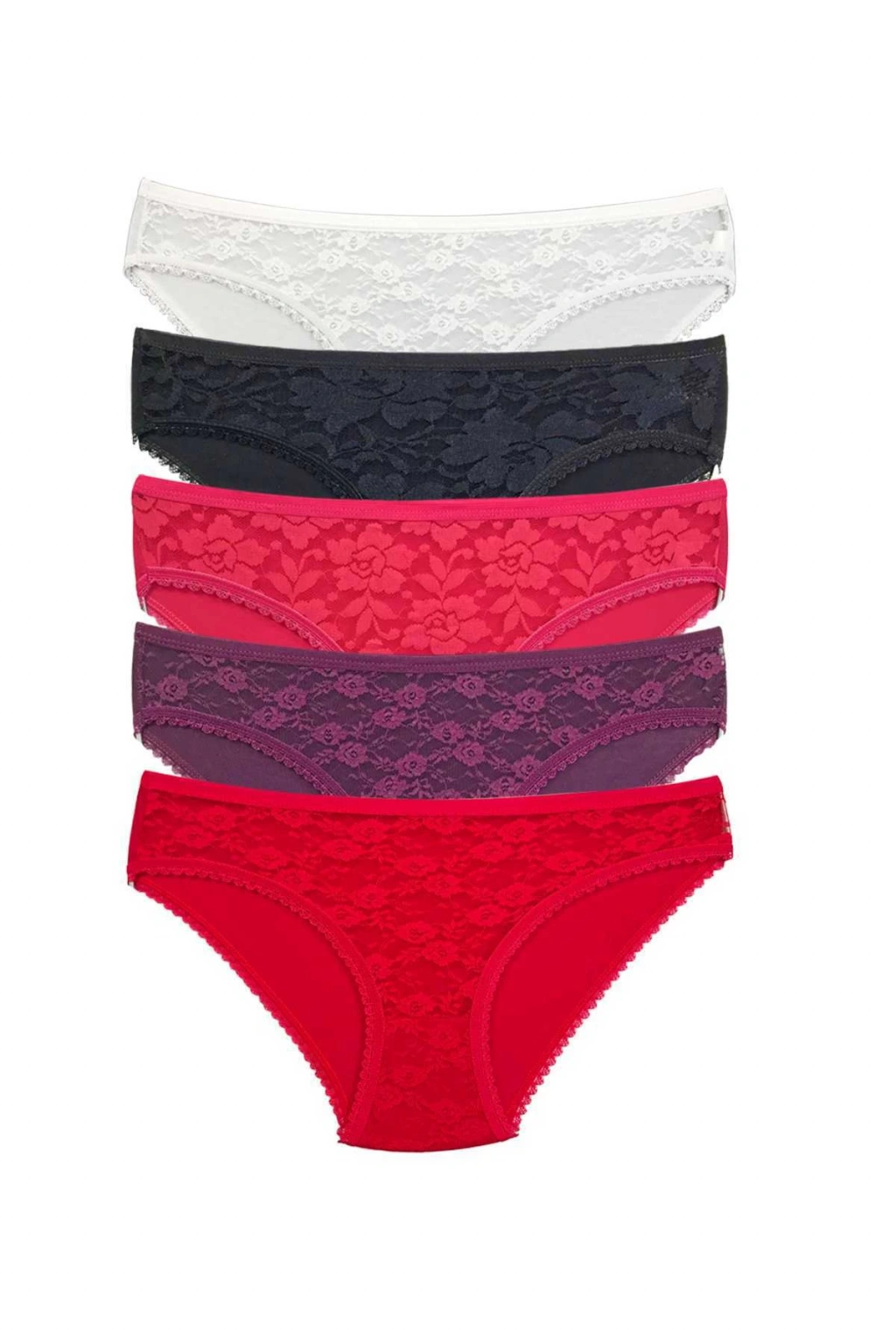 5 Adet Önü Dantelli Transparan Kadın Slip Külot