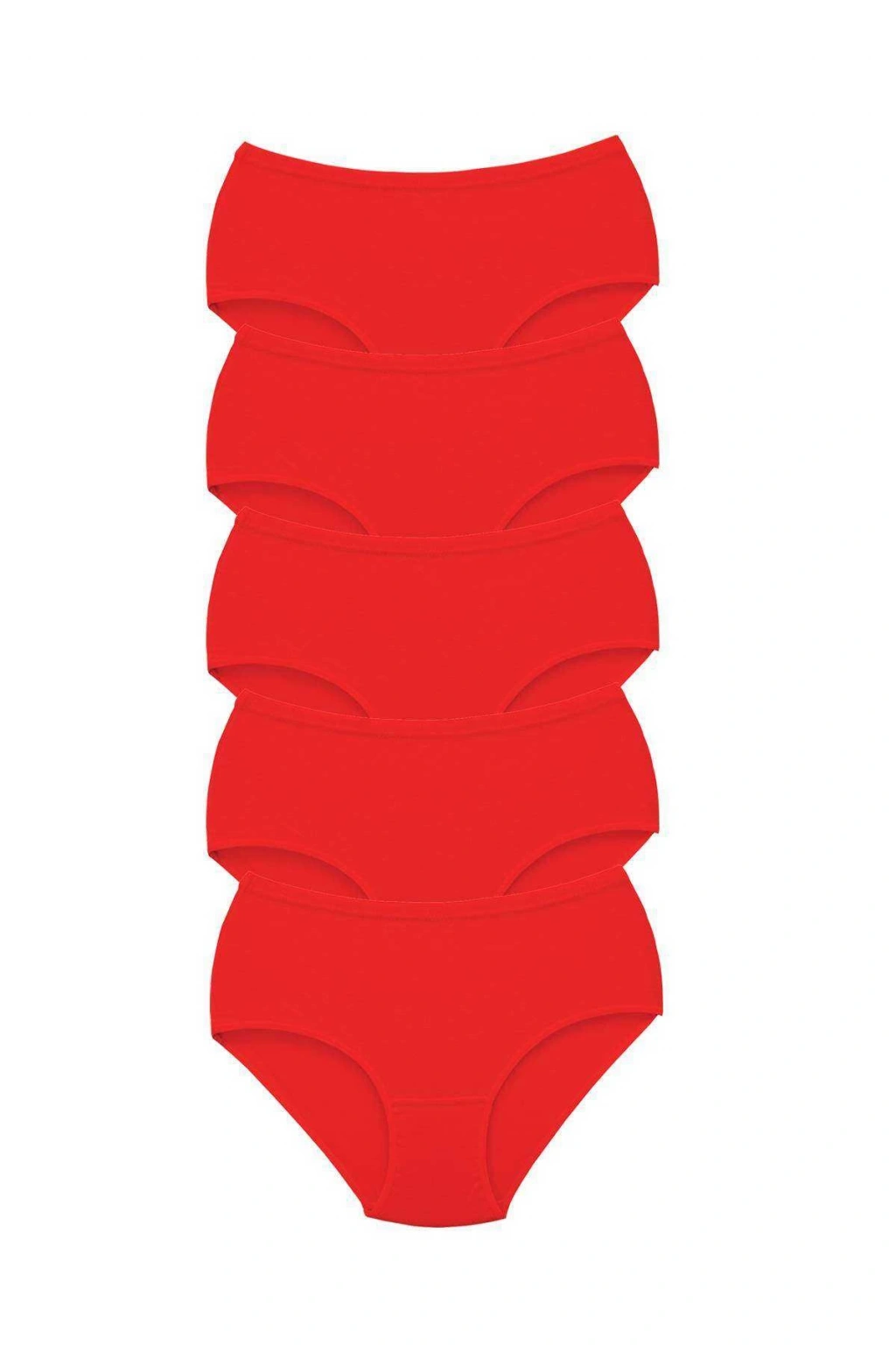 5 Adet Tutku Kadın Yüksek Bel Bato Kalın Lastik Külot Kırmızı