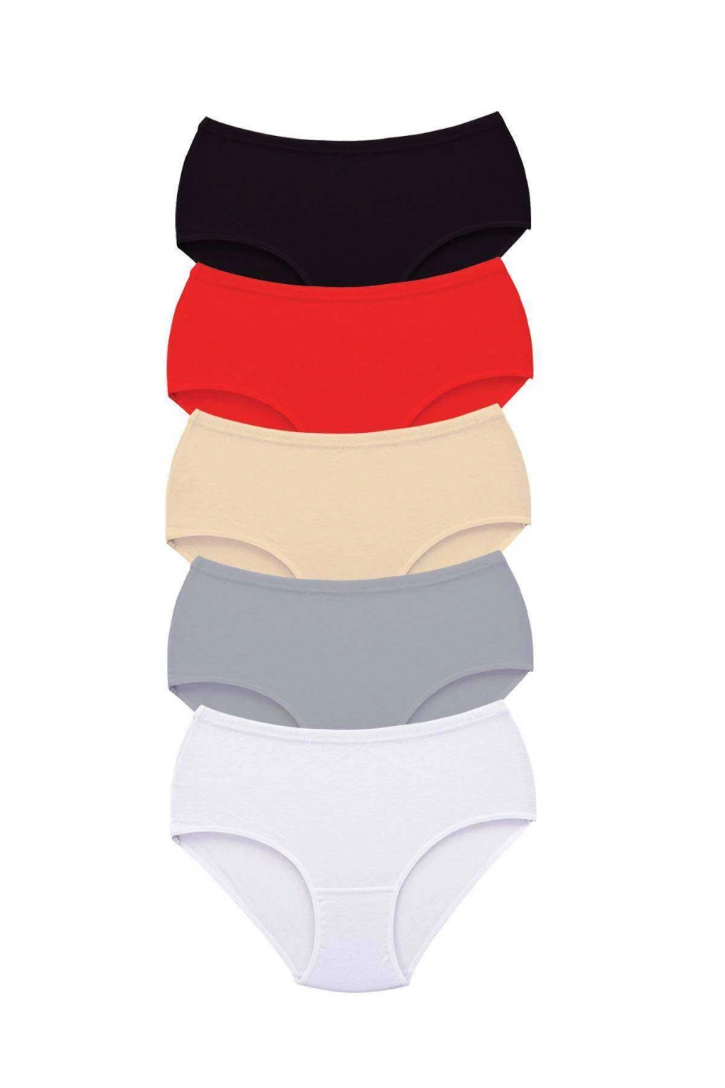 5 Adet Tutku Kadın Yüksek Bel Bato Kalın Lastik Külot Siyah Kırmızı Ten Gri Beyaz