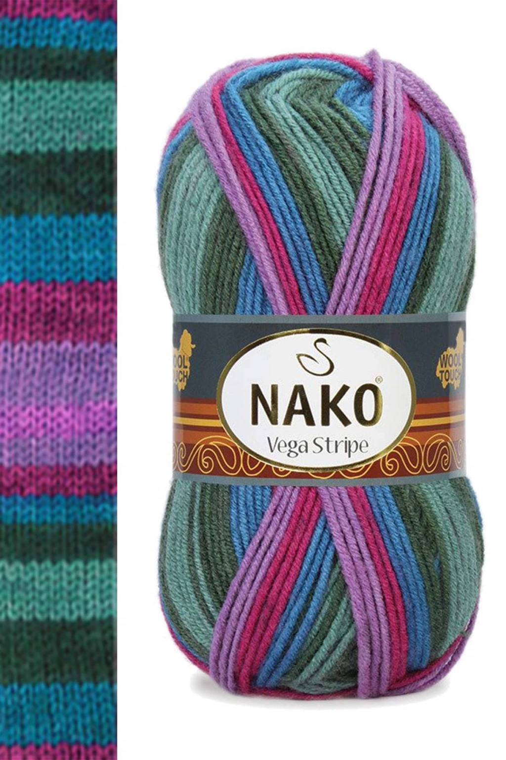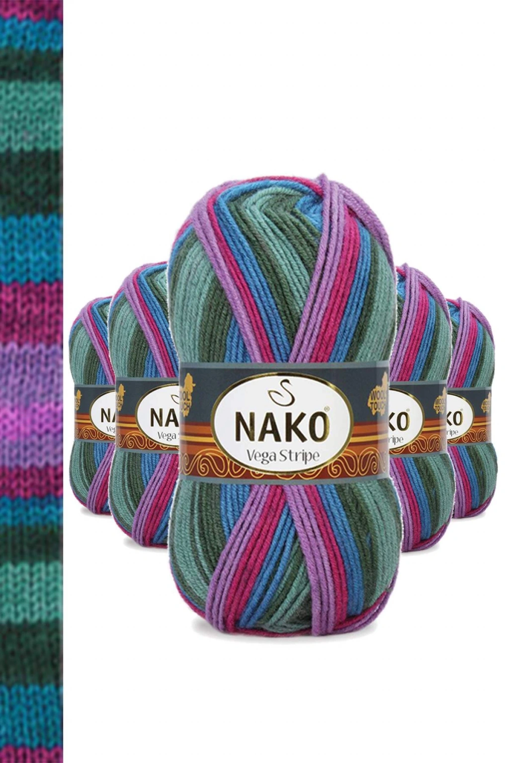 Paket içeriği:   5 Adet Vega Stripe Premium Akrilik El Örgü İpi Yünü No: 82408