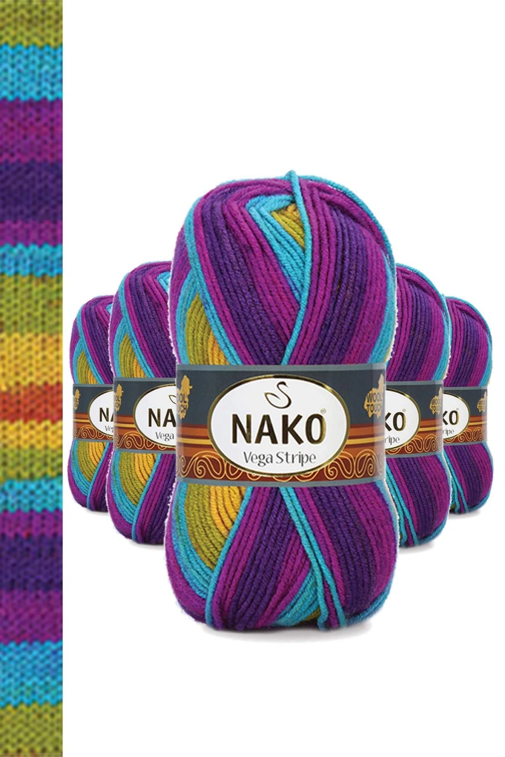 Paket içeriği:   5 Adet Vega Stripe Premium Akrilik El Örgü İpi Yünü No: 82410