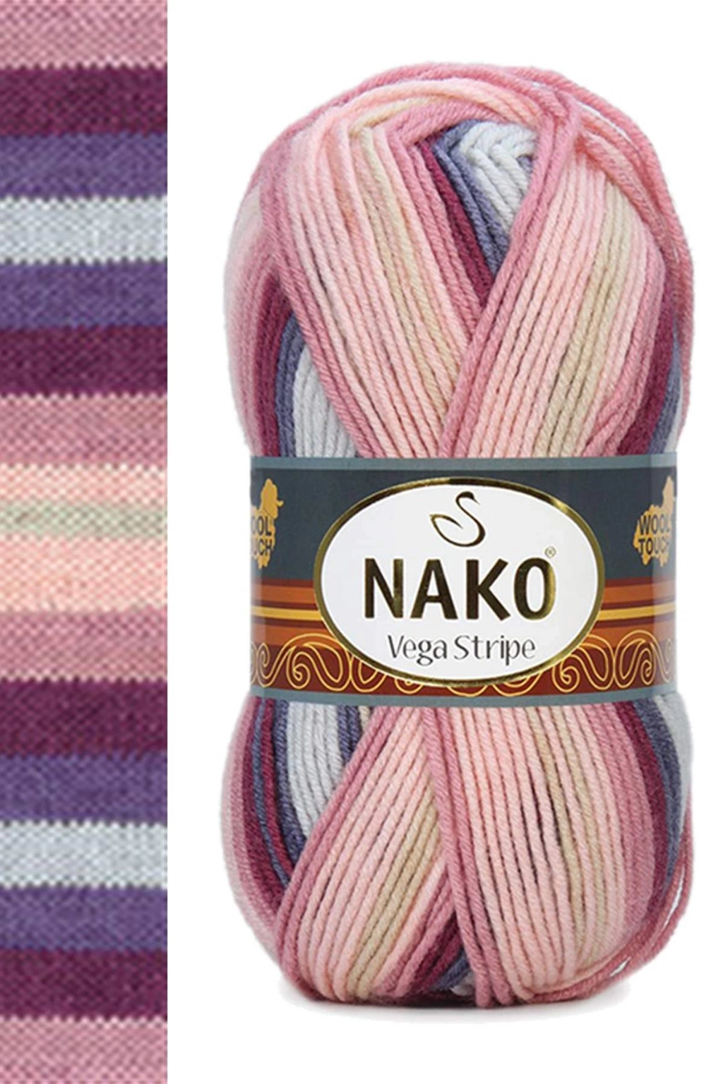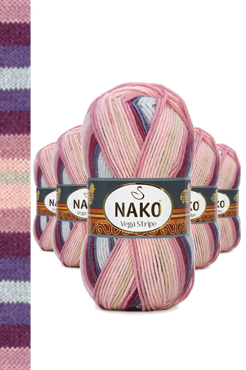Paket içeriği:   5 Adet Vega Stripe Premium Akrilik El Örgü İpi Yünü No: 82415