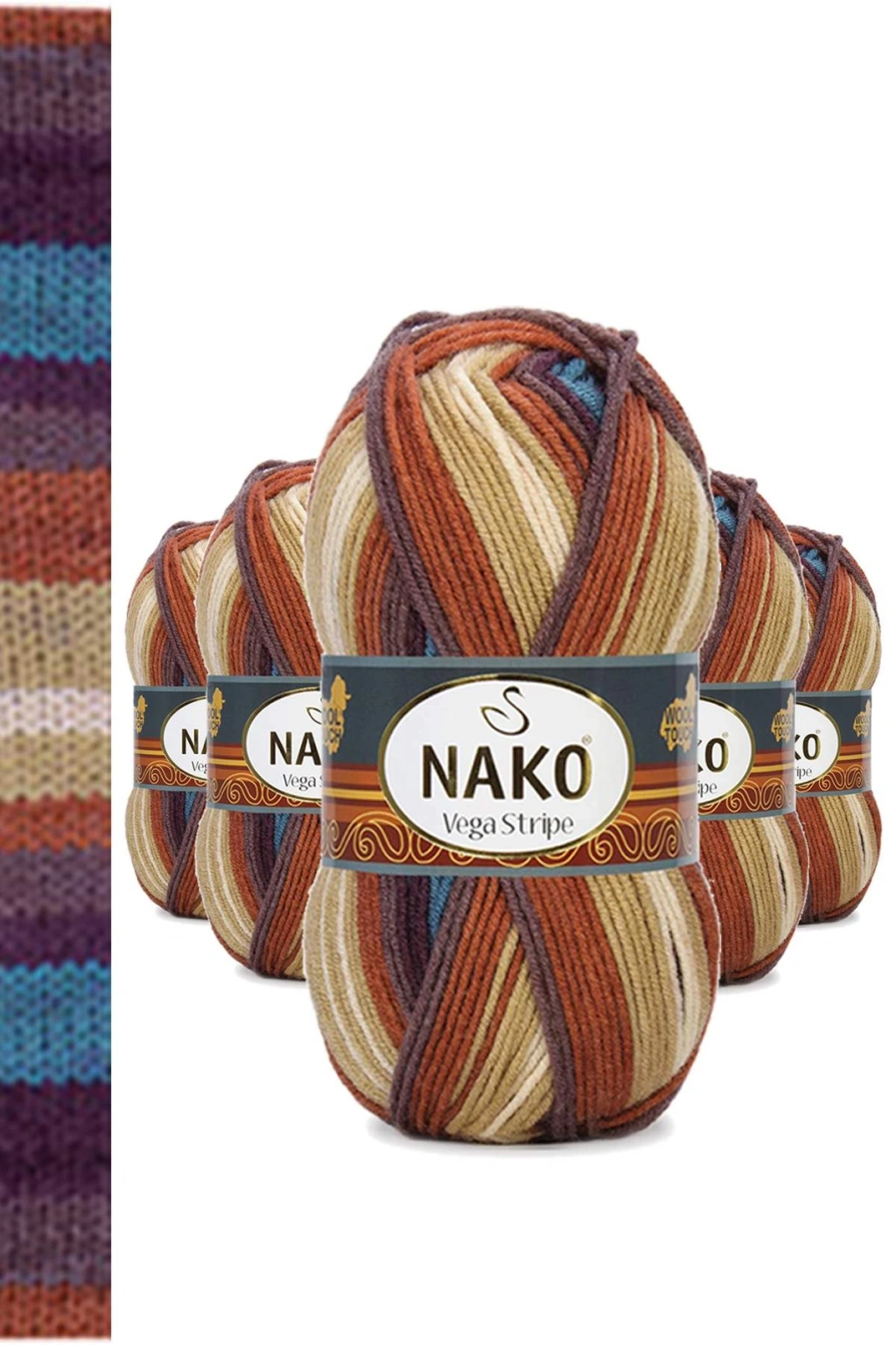 5 Adet Vega Stripe Premium Akrilik El Örgü İpi Yünü No: 82420