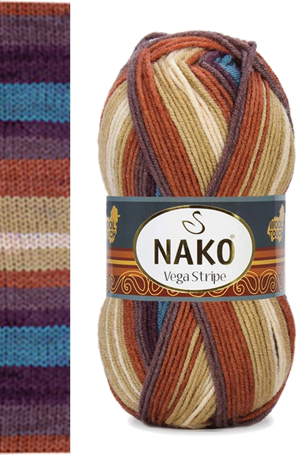 Paket içeriği:   5 Adet Vega Stripe Premium Akrilik El Örgü İpi Yünü No: 82420