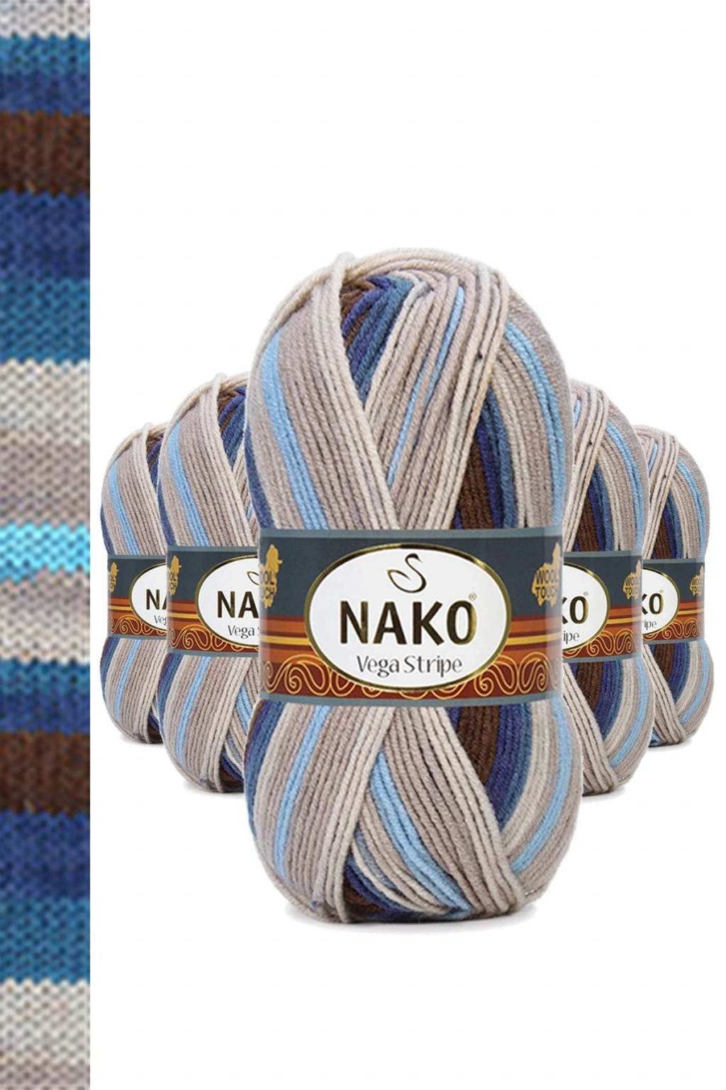 Paket içeriği:   5 Adet Vega Stripe Premium Akrilik El Örgü İpi Yünü No: 82422