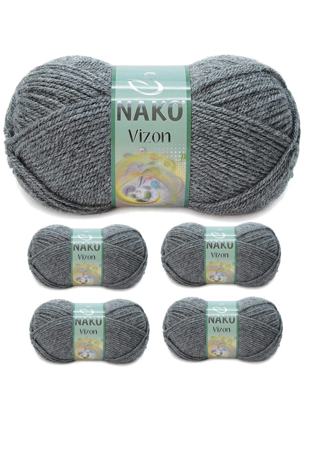 5 Adet Vizon Premium Akrilik El Örgü İpi Yünü Renk No:193 Loş Gri