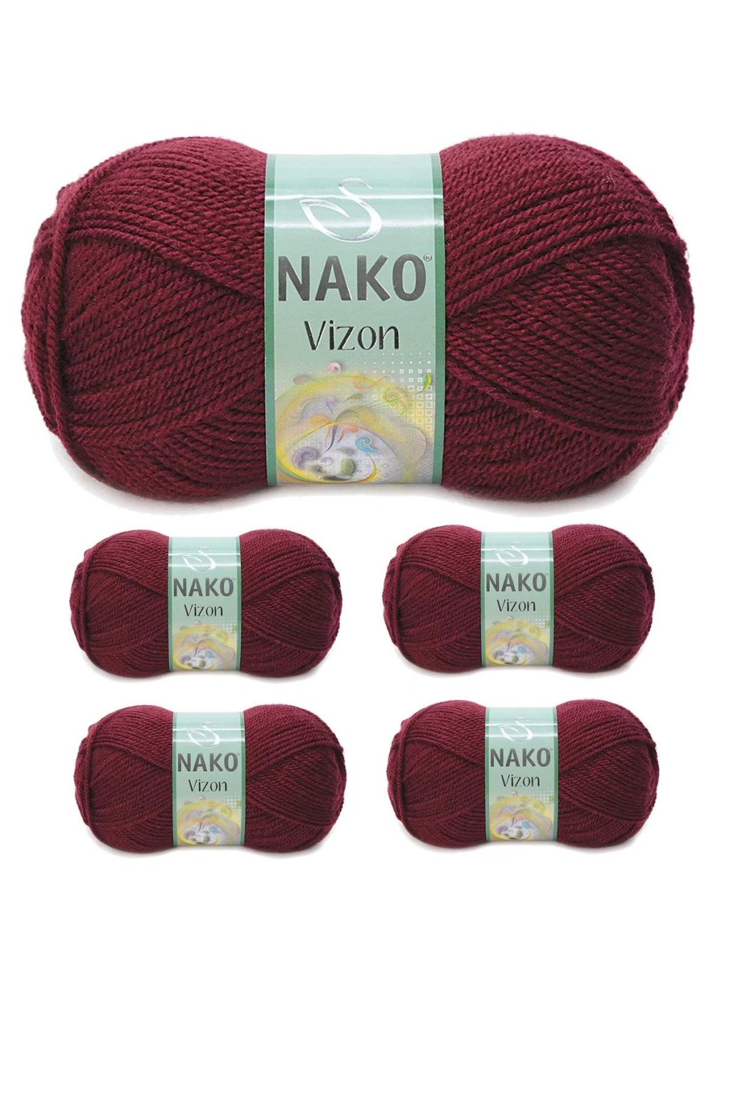 5 Adet Vizon Premium Akrilik El Örgü İpi Yünü Renk No:999 Bordo