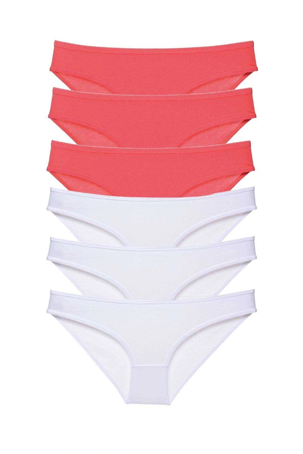 6 Adet Eko Set Likralı Kadın Slip Külot Fuşya Beyaz