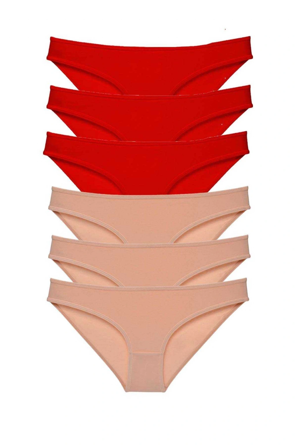 6 Adet Eko Set Likralı Kadın Slip Külot Kırmızı Ten