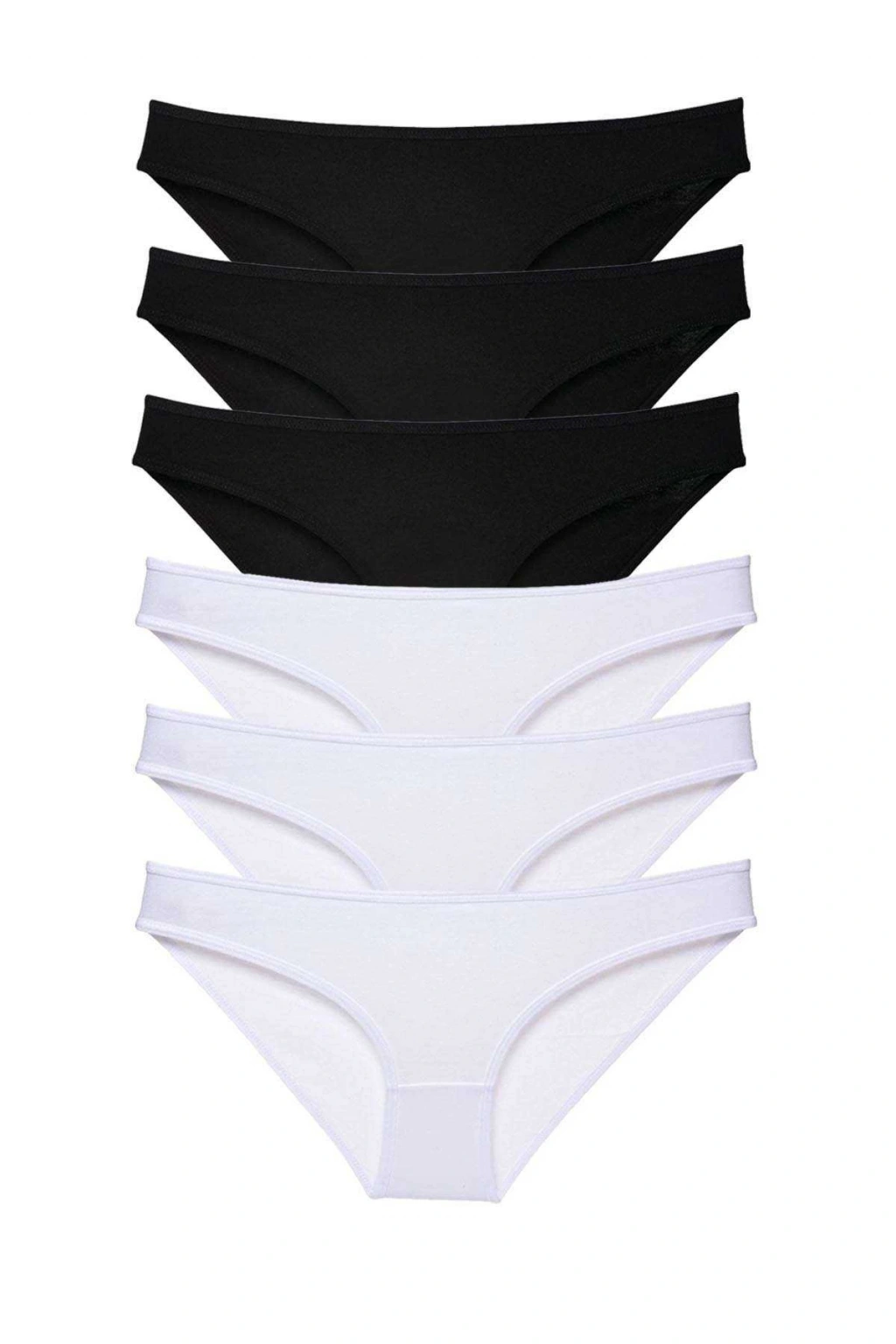 6 Adet Eko Set Likralı Kadın Slip Külot Siyah Beyaz
