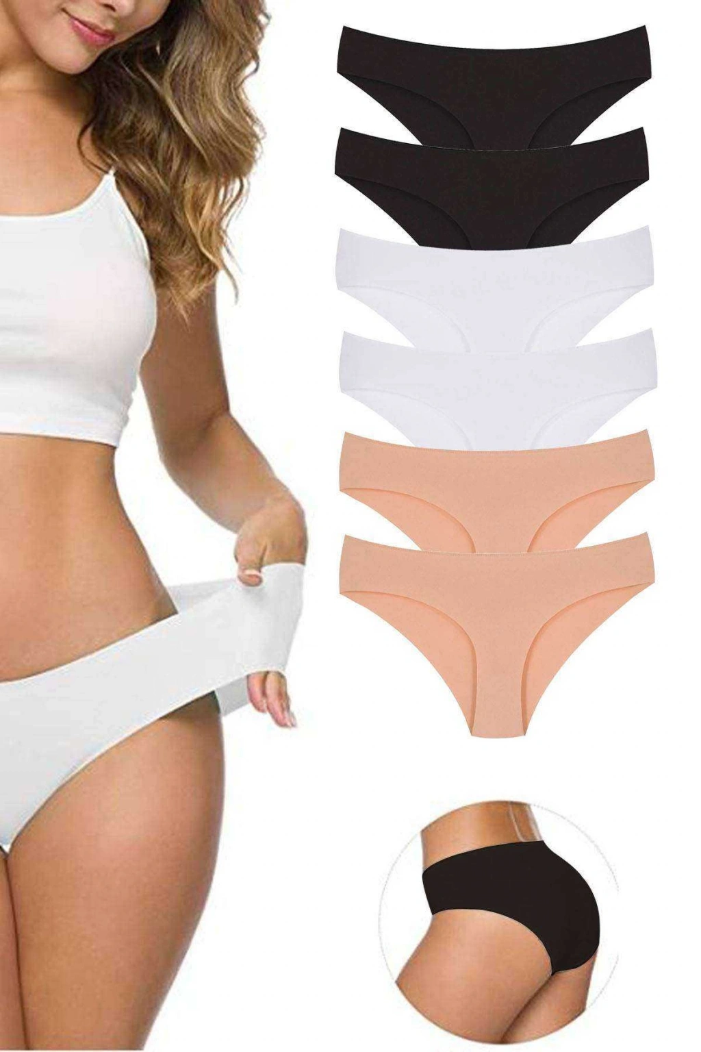 6 Adet Kadın Dikişsiz Lazer Kesim Esnek İz yapmayan Külot Siyah Beyaz Ten