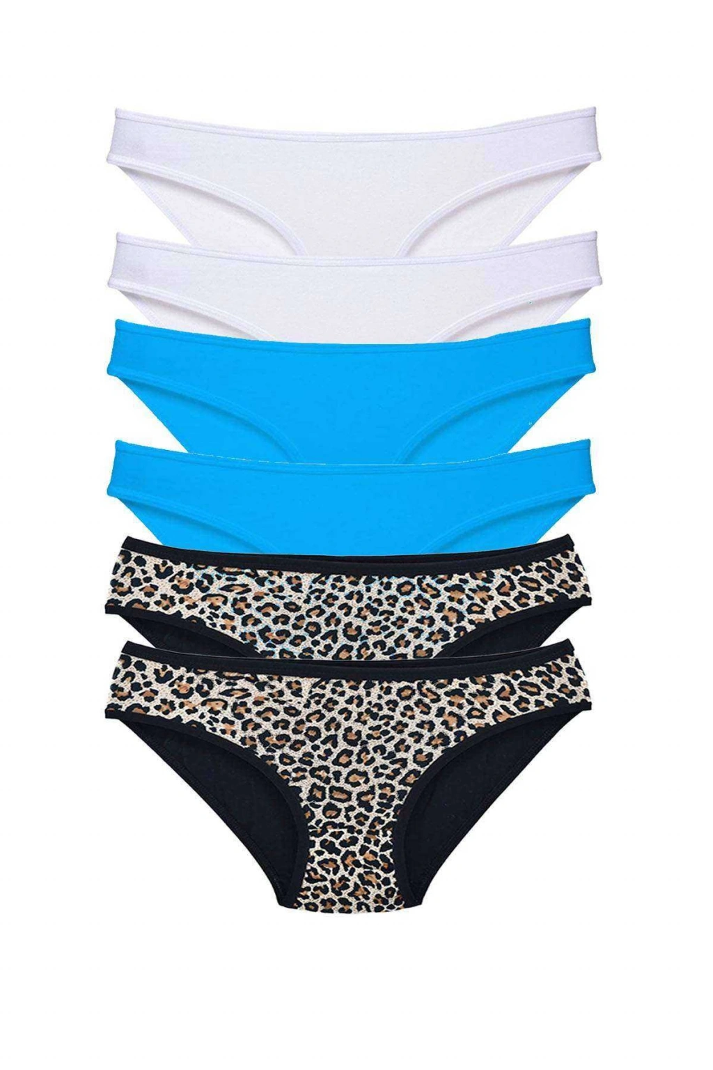 6 Adet Likralı Kadın Slip Külot Leopar Beyaz Mavi