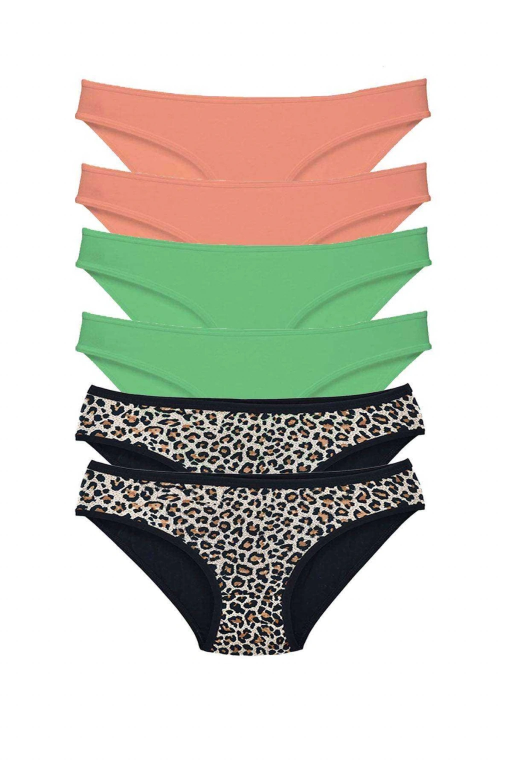 6 Adet Likralı Kadın Slip Külot Leopar Pudra Yeşil