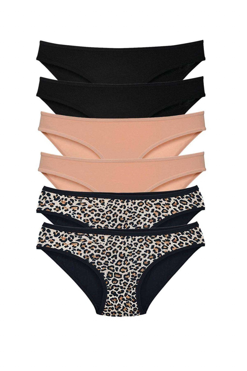 6 Adet Likralı Kadın Slip Külot Leopar Siyah Ten