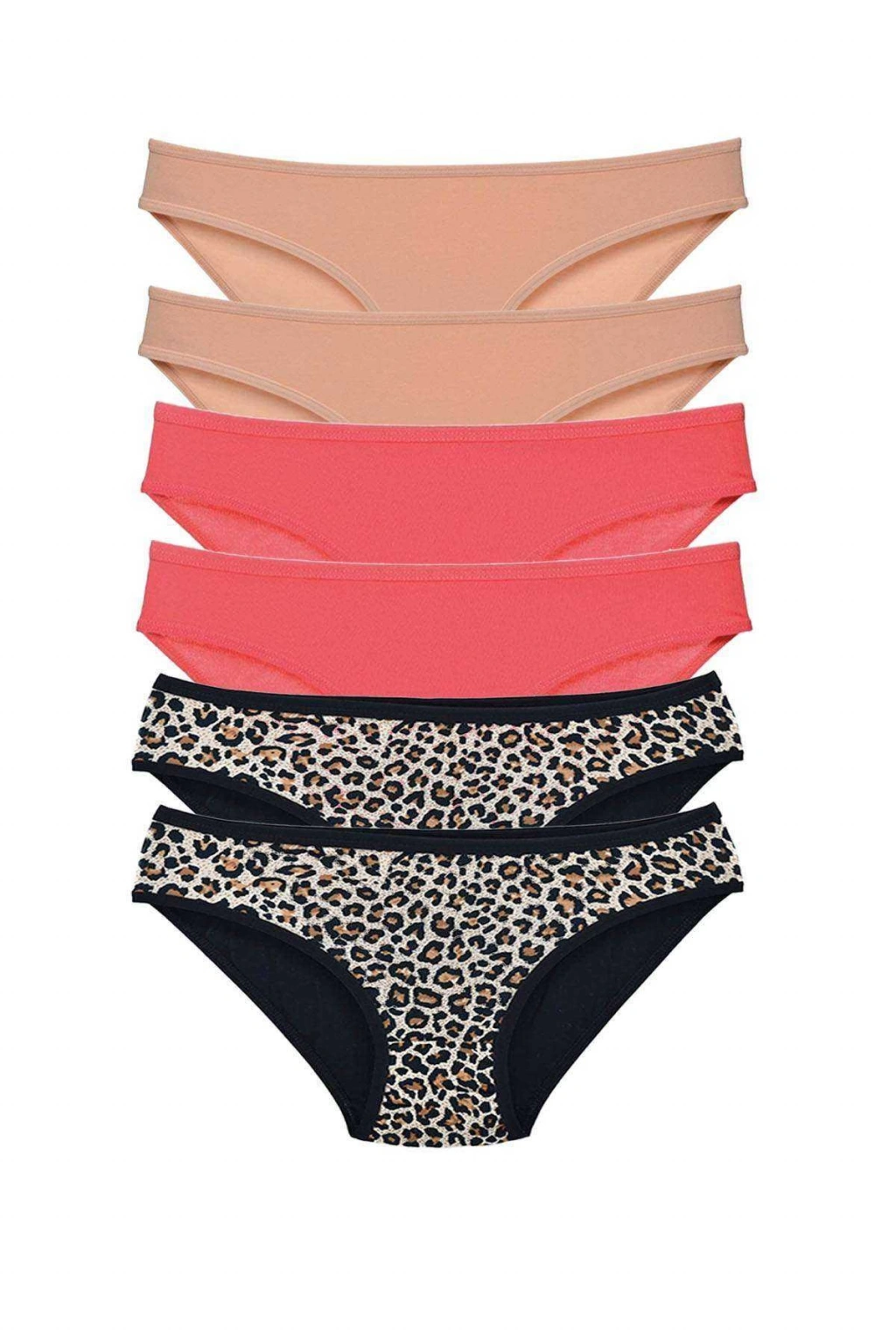 6 Adet Likralı Kadın Slip Külot Leopar Ten Fuşya