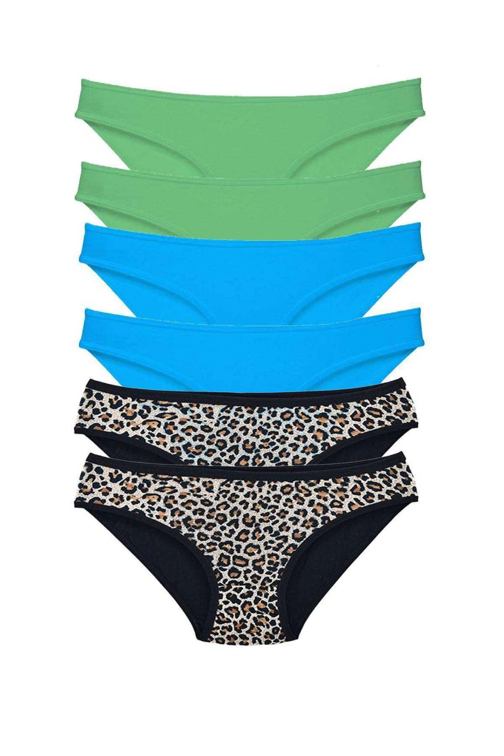 6 Adet Likralı Kadın Slip Külot Leopar Yeşil Mavi