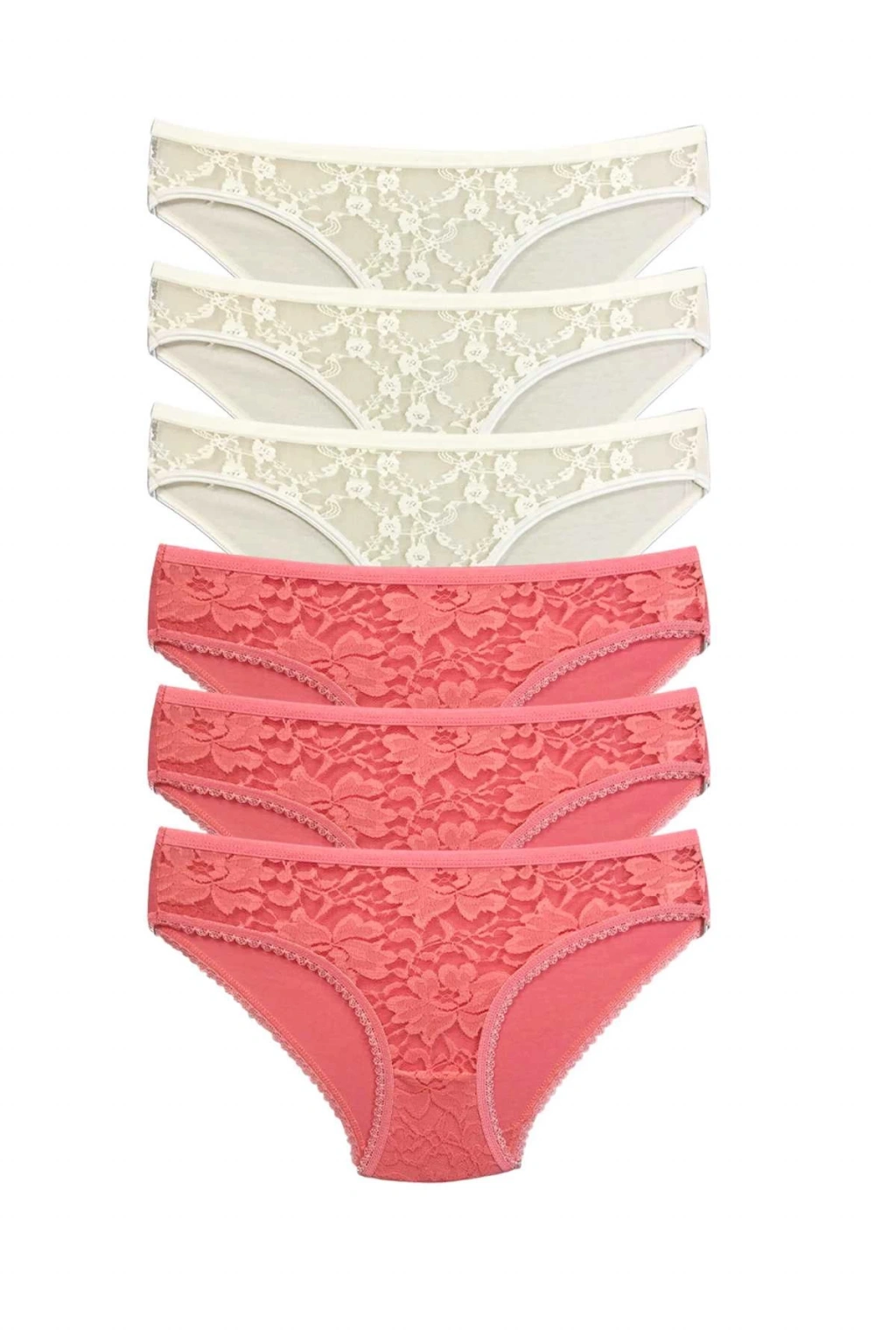 6 Adet Önü Dantelli Transparan Kadın Slip Külot