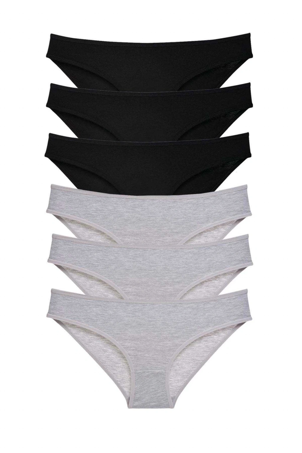 6 Adet Süper Eko Set Likralı Kadın Slip Külot Siyah Gri