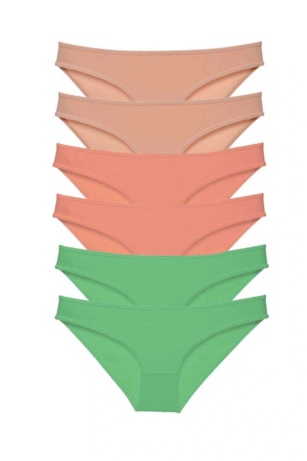 6 Adet Süper Eko Set Likralı Kadın Slip Külot Ten Pudra Yeşil