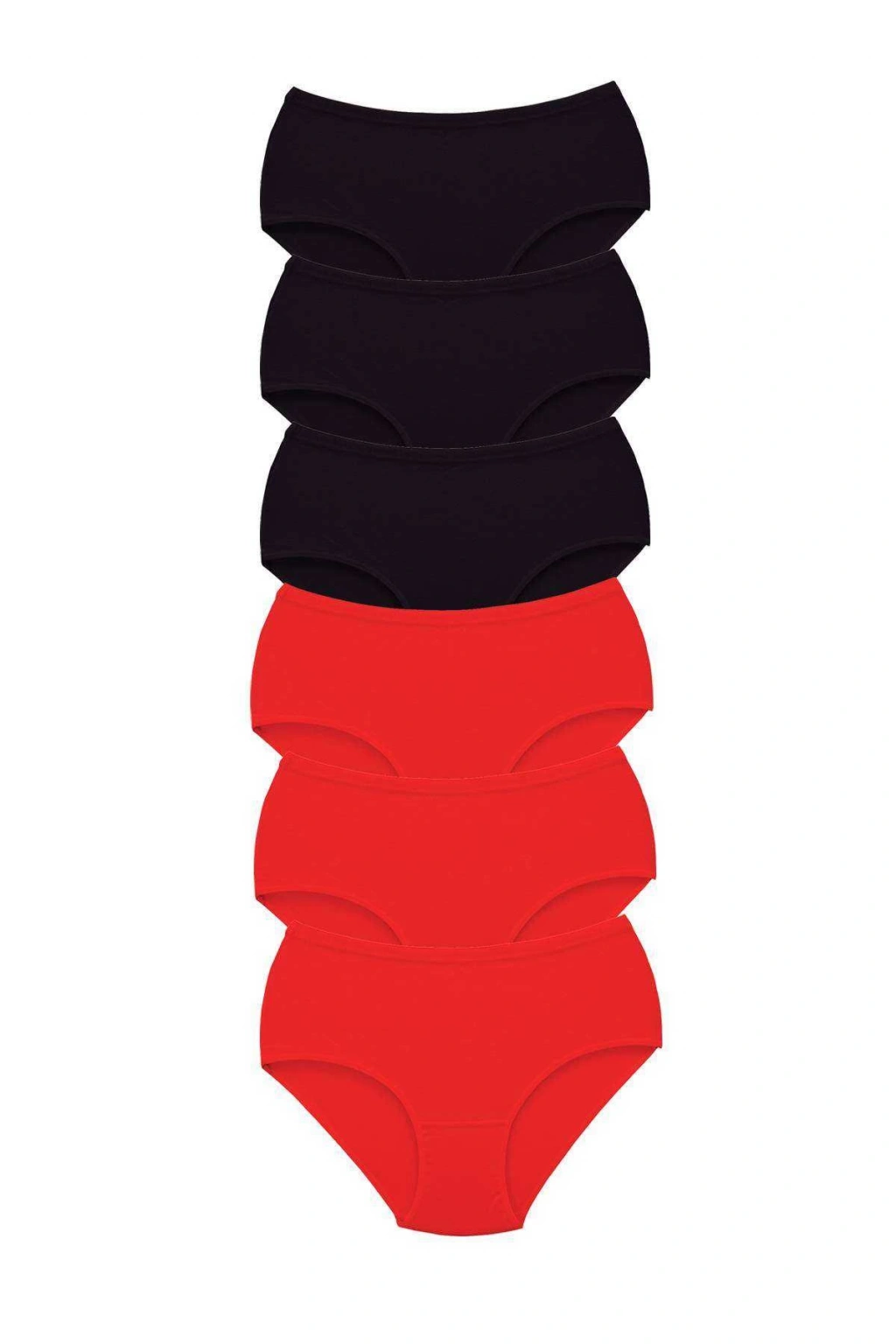 6 Adet Tutku Kadın Yüksek Bel Bato Kalın Lastik Külot Siyah Kırmızı