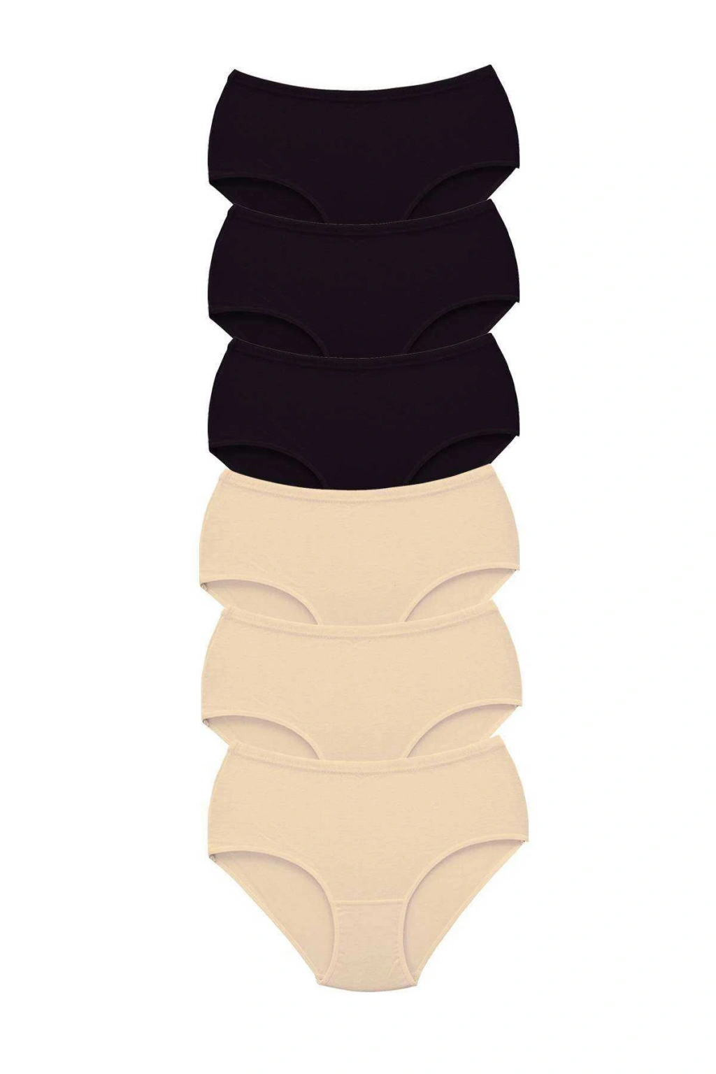 6 Adet Tutku Kadın Yüksek Bel Bato Kalın Lastik Külot Siyah Ten