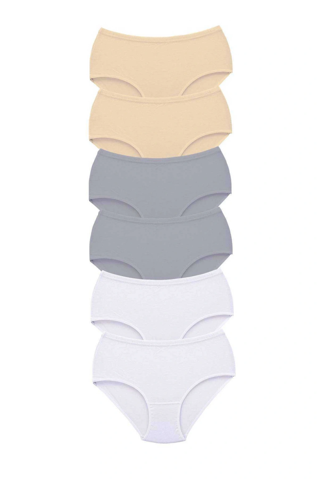 6 Adet Tutku Kadın Yüksek Bel Bato Kalın Lastik Külot Ten Gri Beyaz