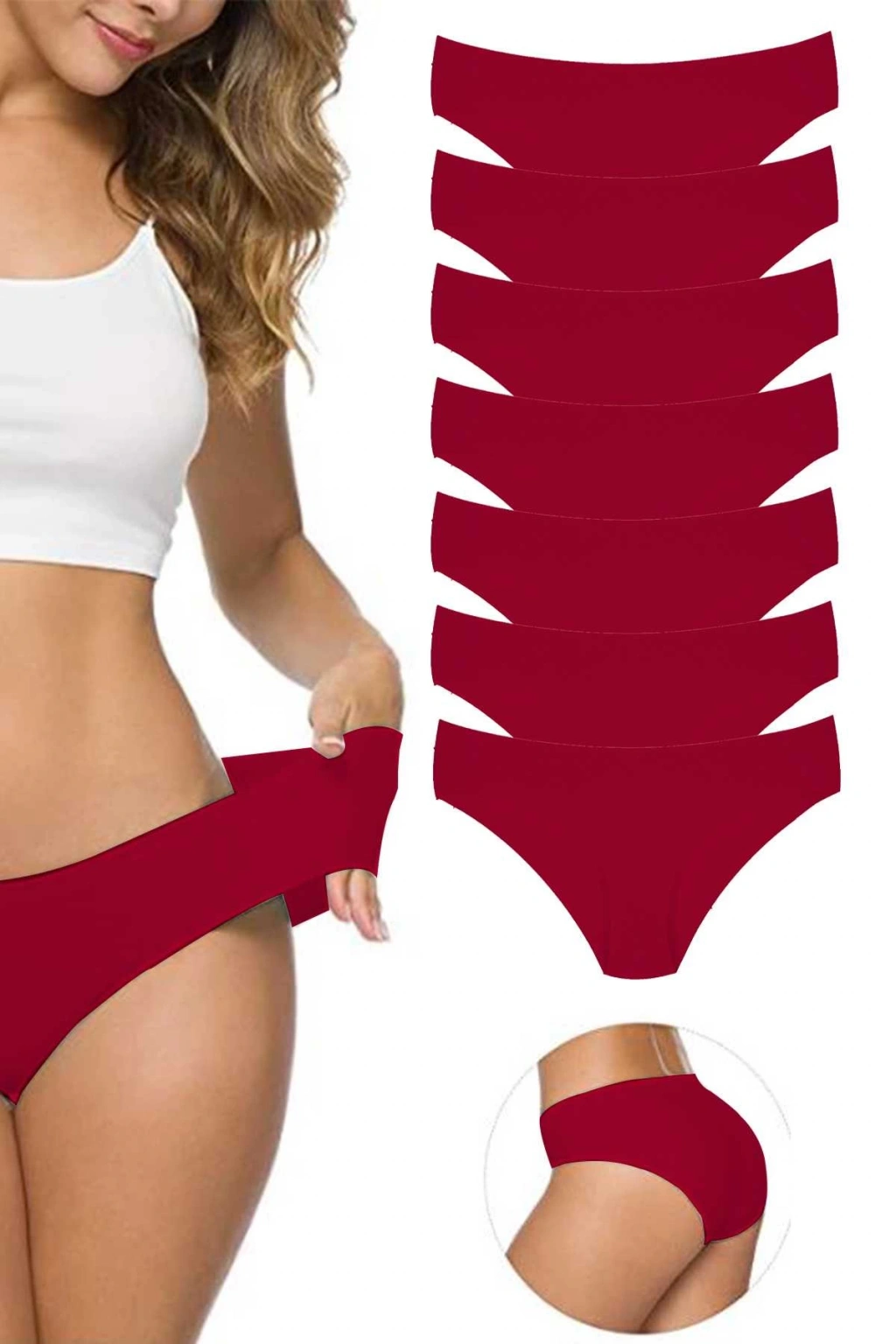 7 Adet Kadın Dikişsiz Lazer Kesim Esnek İz yapmayan Külot Bordo
