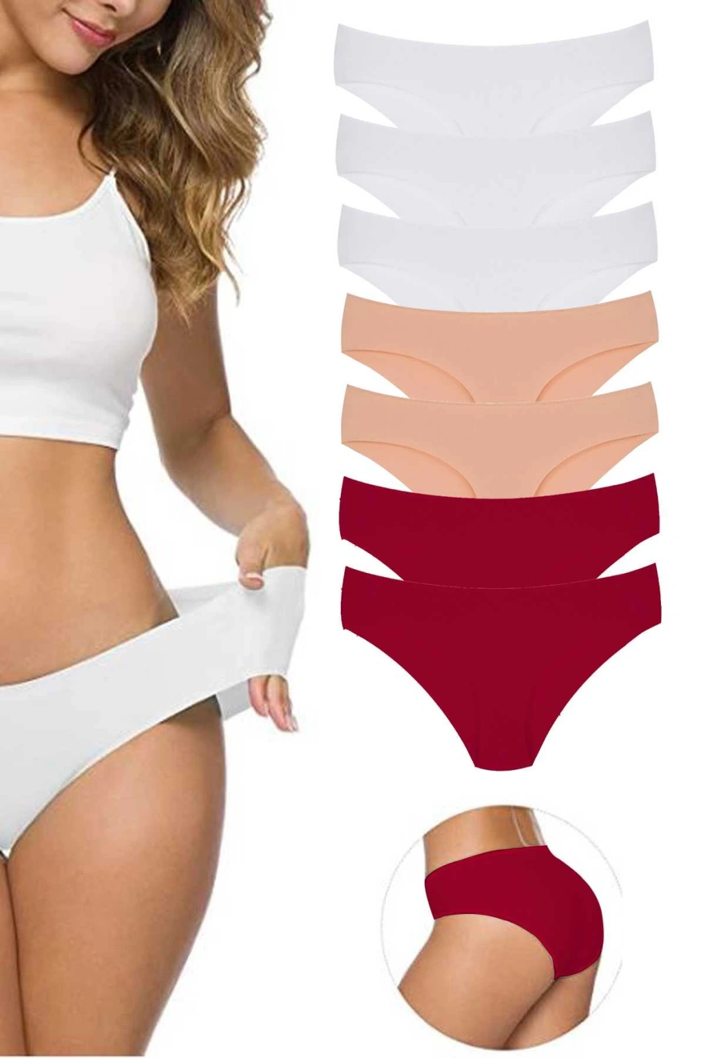 7 Adet Kadın Dikişsiz Lazer Kesim Esnek İz yapmayan Külot Beyaz Ten Bordo