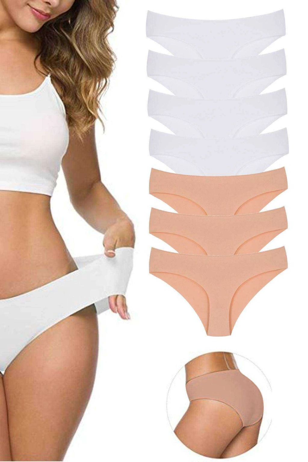 7 Adet Kadın Dikişsiz Lazer Kesim Esnek İz yapmayan Külot Beyaz Ten