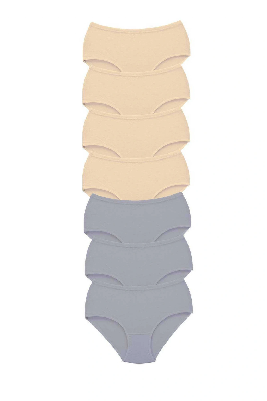 7 Adet Tutku Kadın Yüksek Bel Bato Kalın Lastik Külot Ten Gri