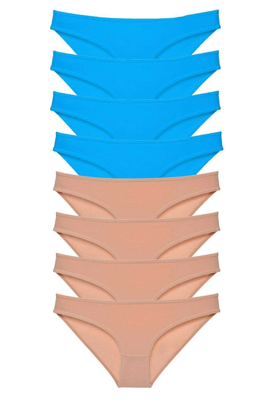 8 Adet Eko Set Likralı Kadın Slip Külot Ten Ve Mavi