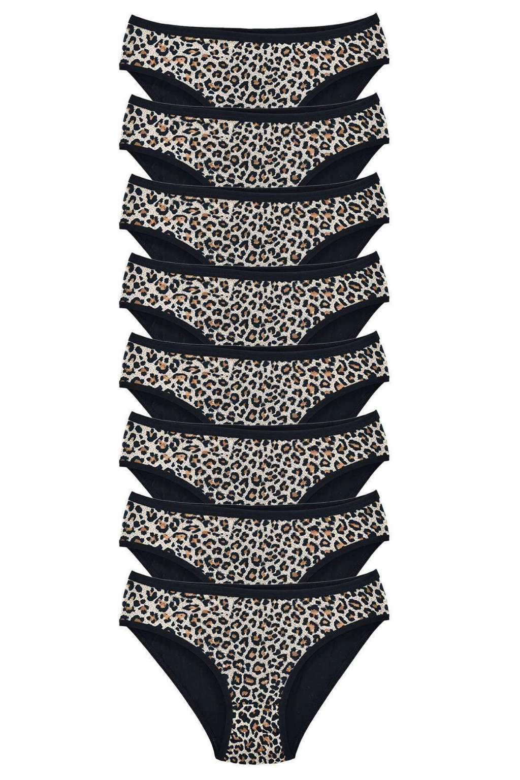 8 Adet Leopar Desenli Likralı Yumuşak Dokulu Kadın Slip Külot