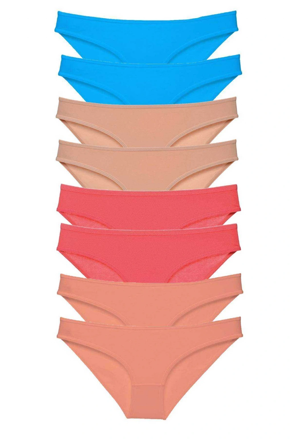 8 Adet Süper Eko Set Likralı Kadın Slip Külot Ten Pudra Fuşya Mavi