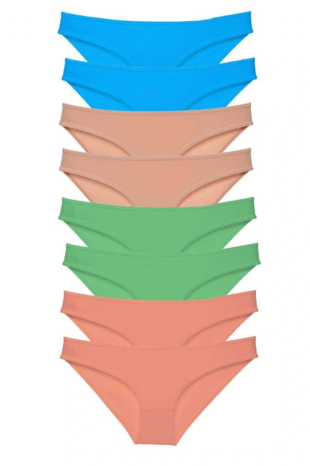 8 Adet Süper Eko Set Likralı Kadın Slip Külot Ten Pudra Yeşil Mavi