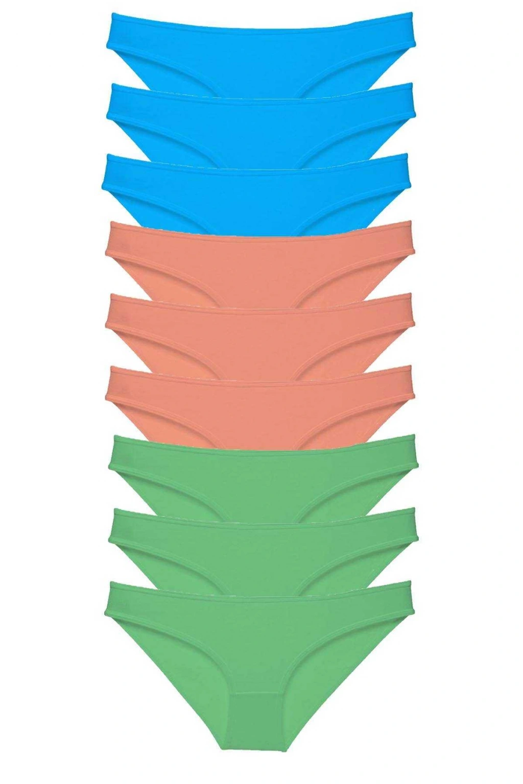 9 Adet Süper Eko Set Likralı Kadın Slip Külot Pudra Yeşil Mavi