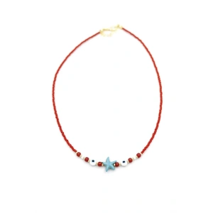 Boncuk Deniz Yıldzı Kolye - Kırmızı