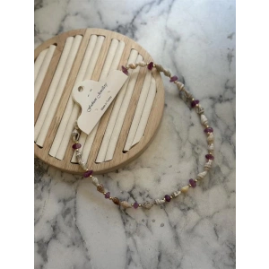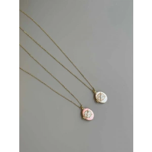 İncili Etnik Desen Kapaklı Kolye - Pembe