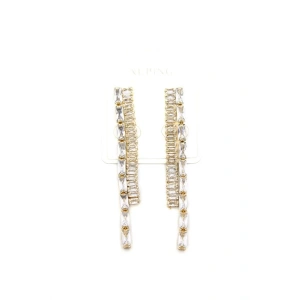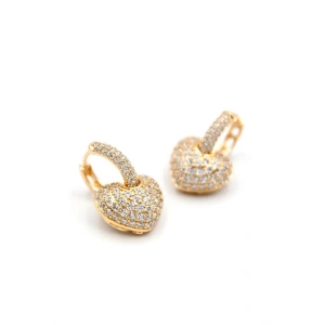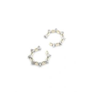 Taşlı Fermuar Kıkırdak Küpe - Altın