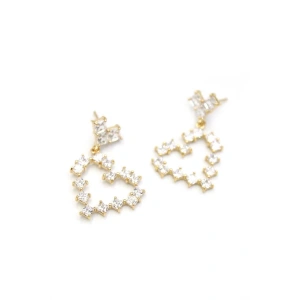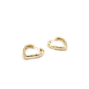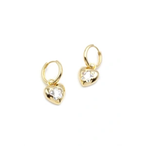 Taşlı Kalp Küpe - Altın