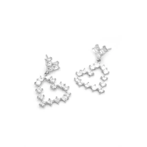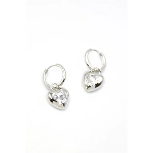 Taşlı Kalp Küpe - Gümüş