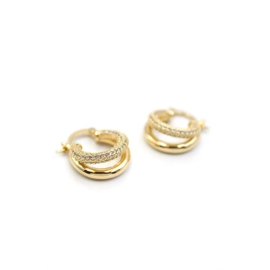 Taşlı Halka Küpe - Altın