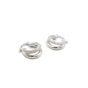 Taşlı Halka Küpe - Gümüş
