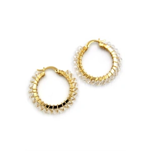 Kristal Boncuk Halka Küpe - Beyaz