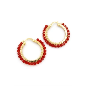 Kristal Boncuk Halka Küpe - Kırmızı