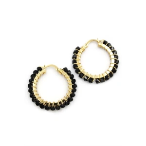 Kristal Boncuk Halka Küpe - Siyah