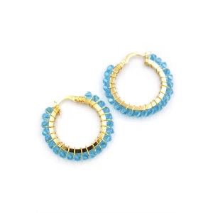 Kristal Boncuk Halka Küpe - Turkuaz
