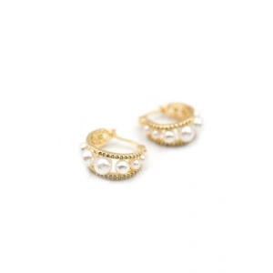 İnci Halka Küpe - Altın