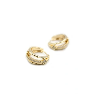 Taşlı Halka Küpe - Altın